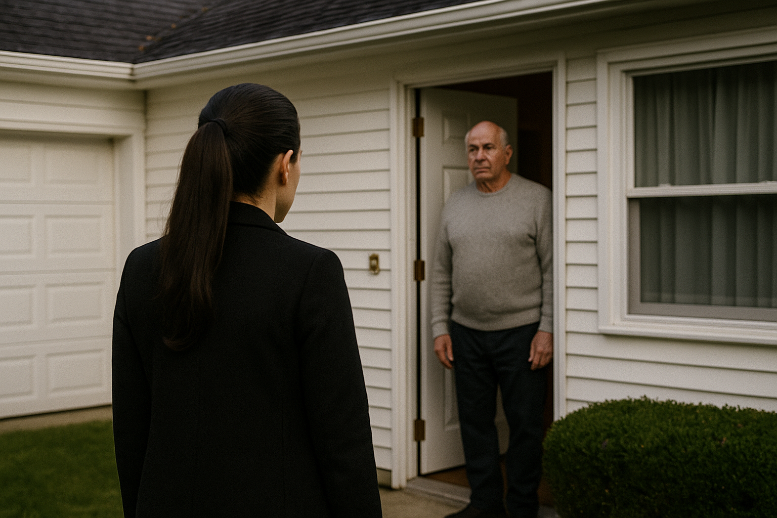 Ein gepflegter Garten, akkurat geschnittener Rasen, Fenster mit weißen Vorhängen – das perfekte Bild eines unbescholtenen Ruheständlers. Nur das alte Polizeiwappen, das noch über der Garage hing, erinnerte an frühere Zeiten.