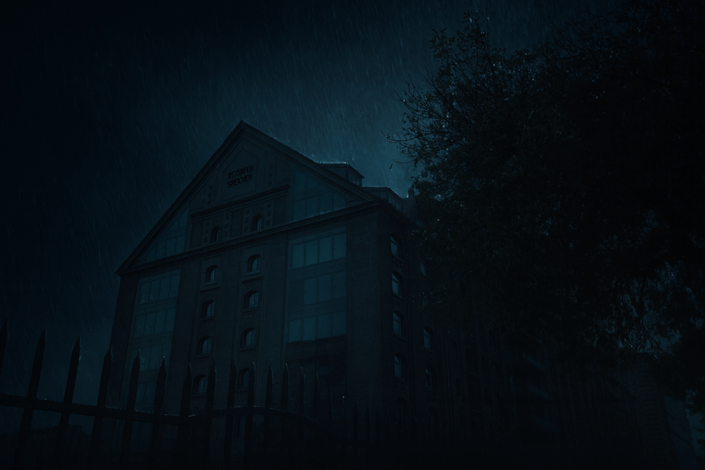 In diesem Moment hörten beide ein Geräusch. Kein Wind, kein Tropfen. Sondern das Knarren von Schritten. Direkt unter ihnen, im Gebäude.