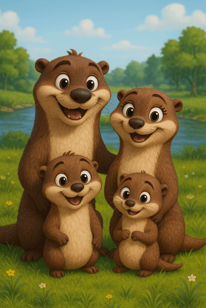 An einem sonnigen Morgen planschte die fröhliche Otterfamilie am Flussufer. Papa Otto, Mama Olivia und die beiden Otterkinder Olli und Lilo liebten es, im klaren Wasser zu schwimmen und über die grünen Wiesen zu tollen.